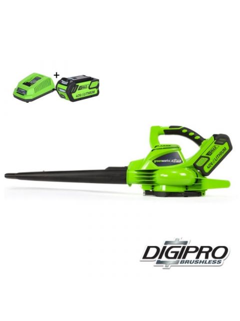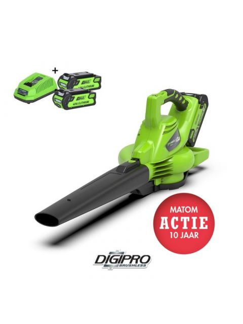 Greenworks heeft twee type accu bladblazers. Eén specifieke bladblazer en een bladblazer- en zuiger combinatie. Een bladblazer wordt gebruikt voor het wegblazen van tuinafval, bladeren, zand, sneeuw, vuil etc. De Greenworks bladblazer- en zuiger type GD40BV is voorzien van de unieke koolborstelvrije DigiPro motor. In combinatie met de 40 Volt Lithium ION accu’s zorgt dit voor top prestaties en een extra lange werktijd.