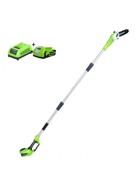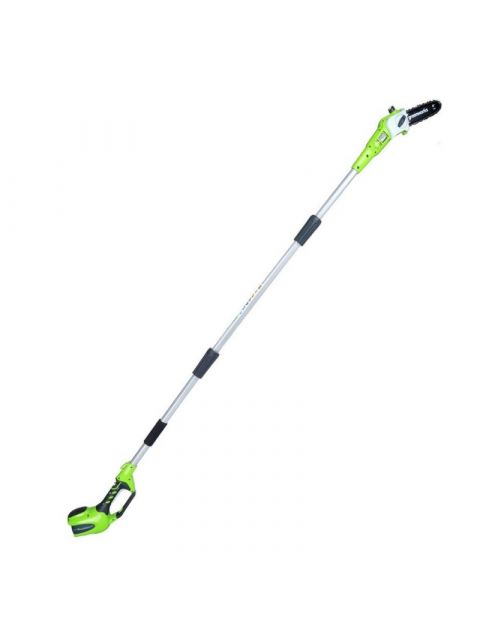 De 24 Volt Greenworks accu-takkenzaag is de meest effectieve methode om takken boven uw normale werkhoogte te snoeien. De Greenworks accu-takkenzaag zorgt voor snoerloze vrijheid. Geen verlengkabels en geen stank door uitlaatgassen, dus milieu vriendelijk. De 24 Volt Lithium ION accu’s zorgen voor top prestaties en een lange werktijd.
